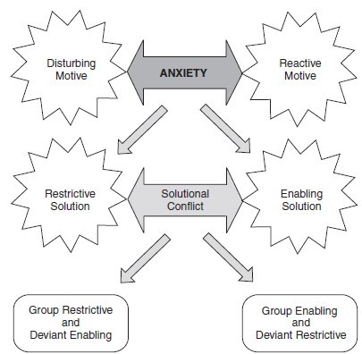 Restrictive solutions allow members to avoid expressing disturbing and reactive motives. Restrictive solutions immediately lower anxiety because they avoid focal conflicts. However, they eventually fail and have to be renegotiated because disturbing motives and reactive motives (fears) persist.