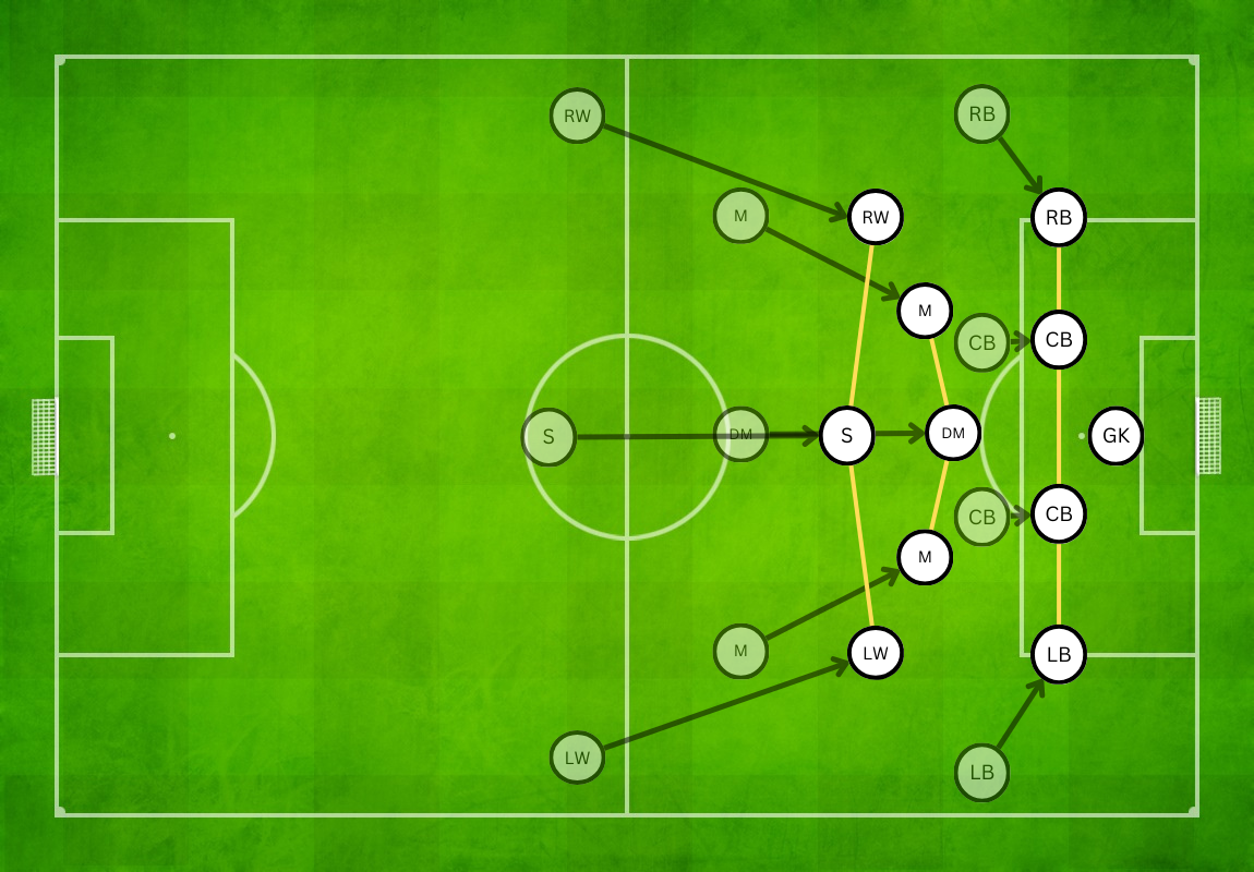 To spread the defending team out by moving the ball quickly and using wide areas of the pitch.