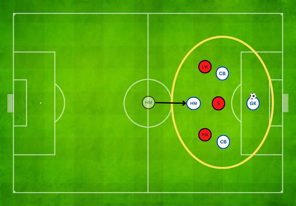 To control the ball, typically in an attacking position, to give teammates time to support the play.