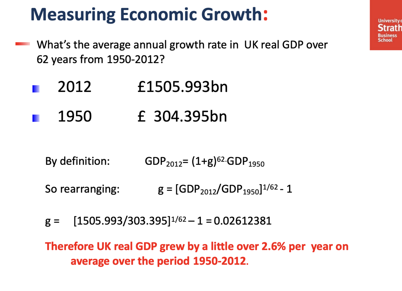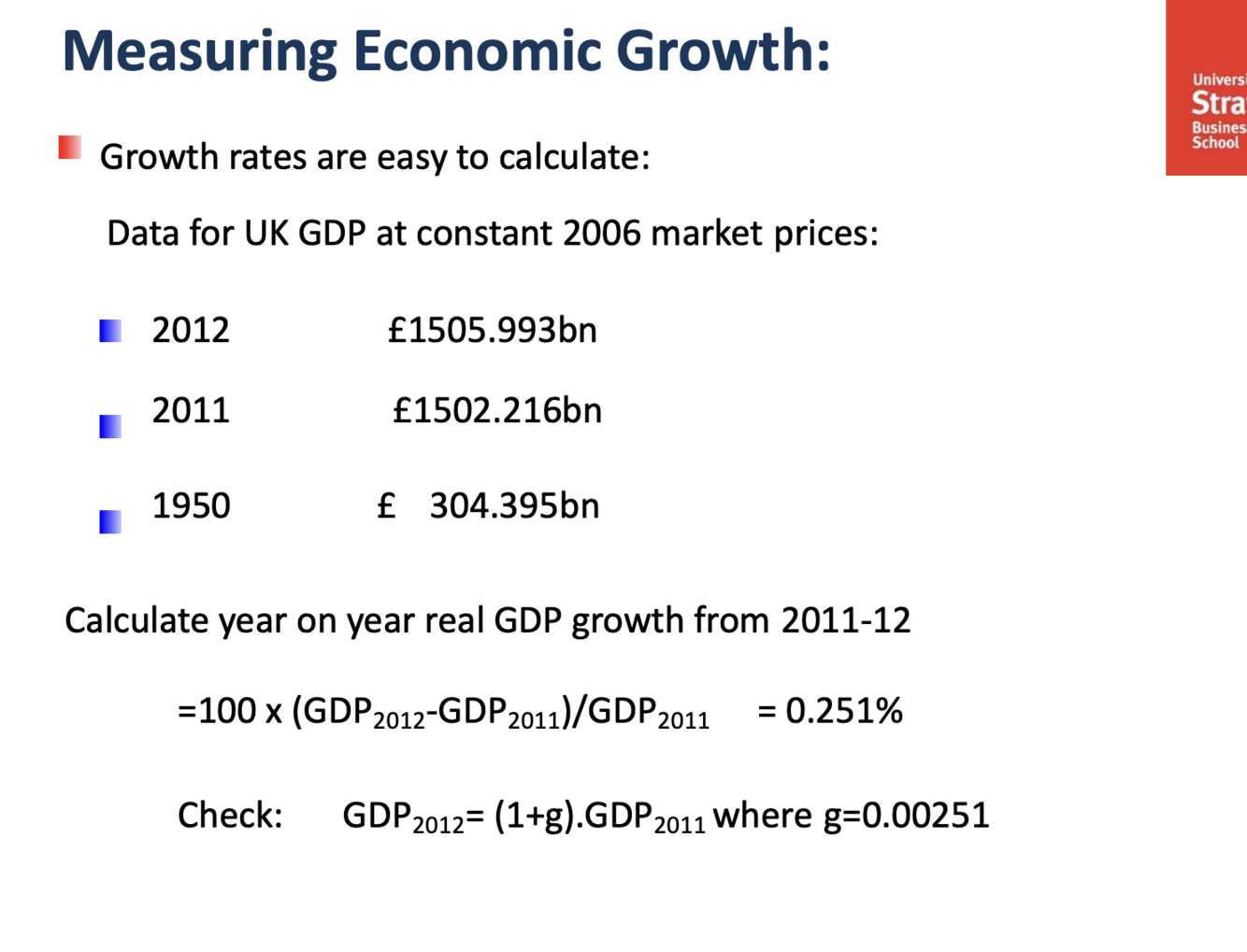 How do you measure economic growth from 2011 to 2012