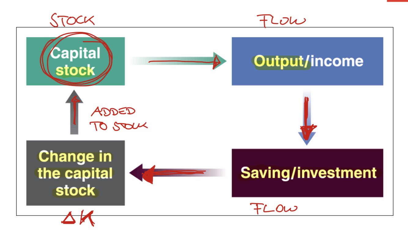 Again the amount of capital determines output, the production function shows this