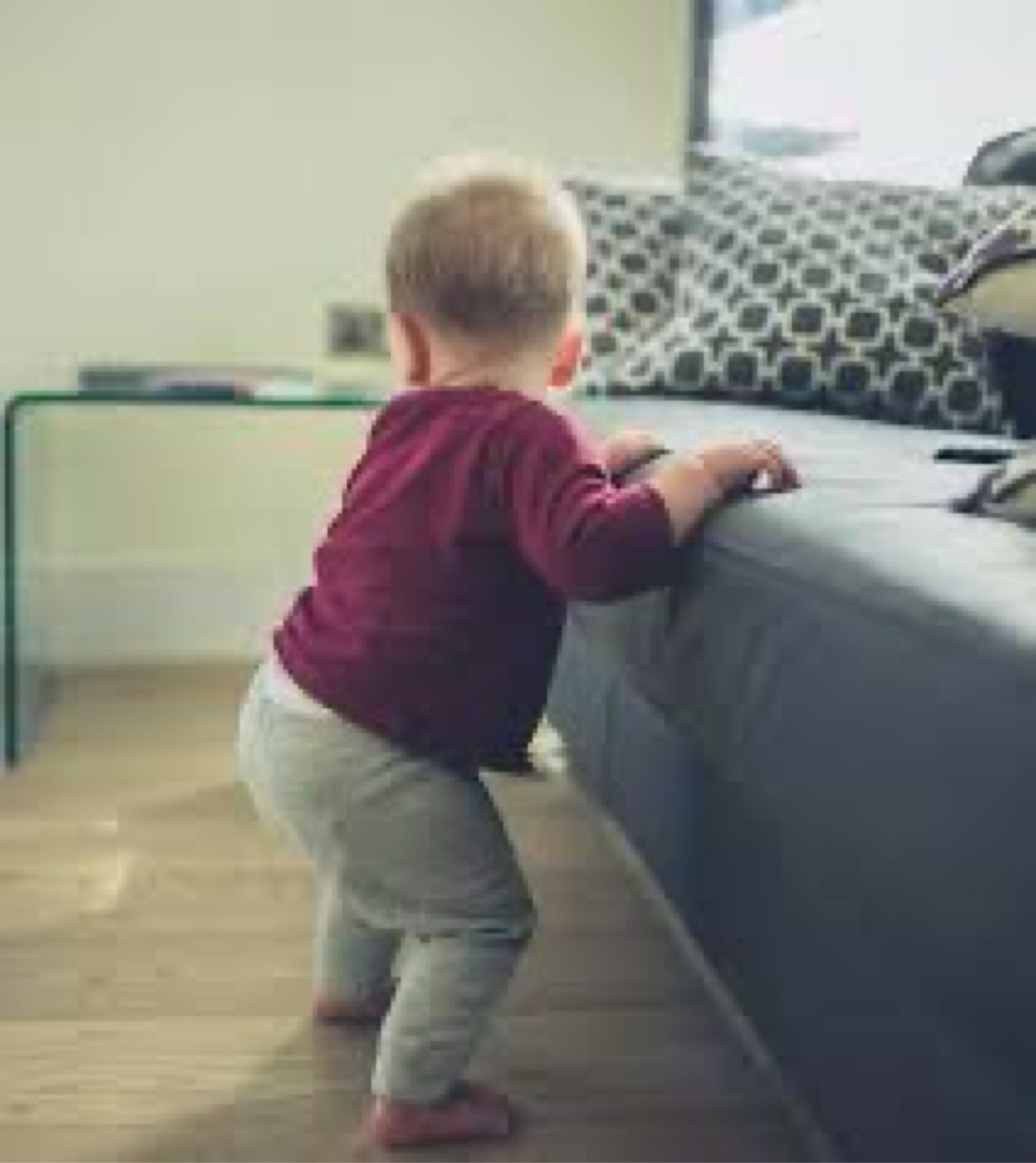 π‘ Cruising is walking sideways while holding on to furniture .