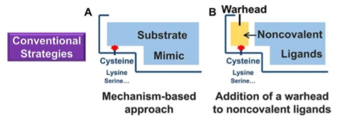 B: Addition von Warhead an einem bereits bekannten hoch selektiv aber nicht-kovalent bindenden WS