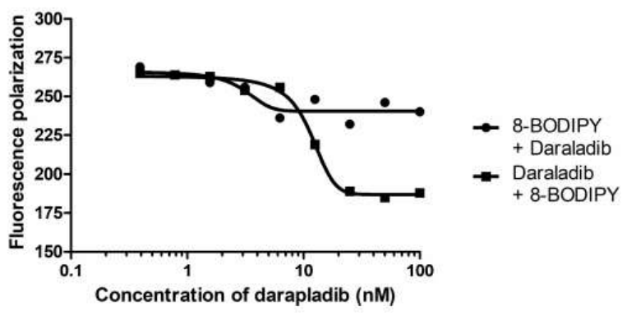 Der Assay dient zur Untersuchung der kompetitiven Inhibition des kovalenten (8-BODIPY) und nicht-kovalenten (Darapladib) Inhibitor an Lp-PLA2.