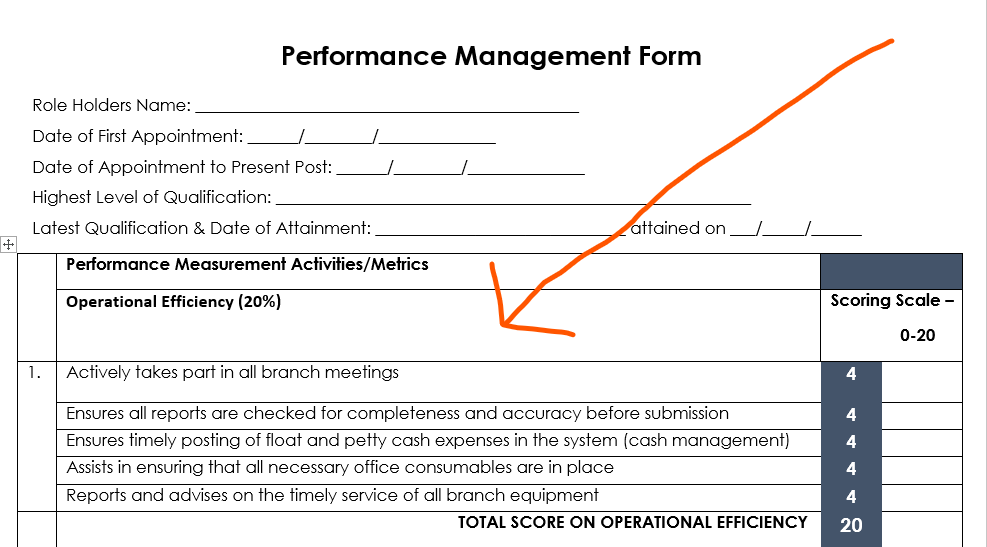 (zoom in on the image below to have a clearer view of the 1st part of the Performance Appraisal Form).