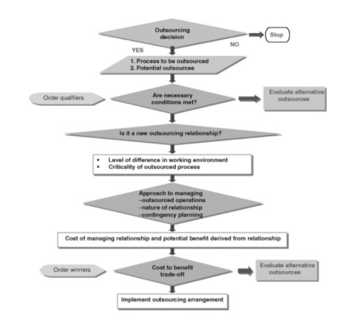How is the framework for evaluating potential outsources?