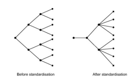 In the above figure, the supply chain to the right is better able to cope with demand volatility, as it has more options in the second step to steer production towards another product.