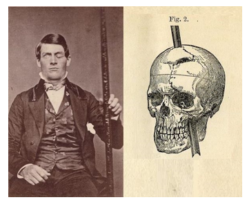 Phineas Gage impaled its own head on accident during work, which led to the pole damaging its frontal association cortex. Phineas his personality changed entirely (inability to function socially, inconsiderate, inability to plan).