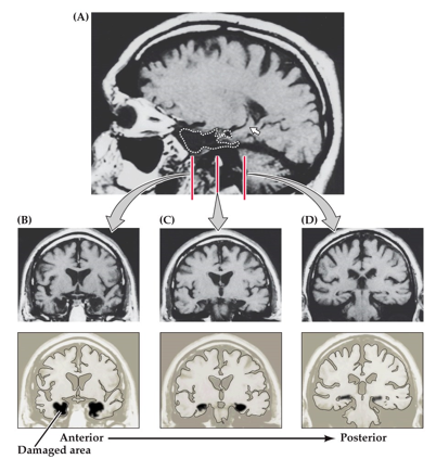 In epileptic patients, they can remove parts of the hippocampus to treat symptoms. In order to do this, surgeons need to cut away a piece of their temporal lobe. This can be used for research. With this, they also performed cognitive and mental tests (see picture).