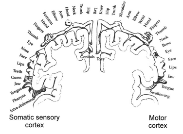 Dr Wilder Penfield described the functions of the sensory and motor cortex by opening up the skull and while patients were awake stimulating certain brain areas.