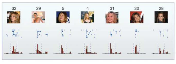 Electrical recordings of neuronal activity were made during certain behaviors, like the visual representation of Jennifer Aniston. They found the Jennifer Aniston neurons that only spike when seeing the face of Jennifer Aniston (there are also grandmother neurons).