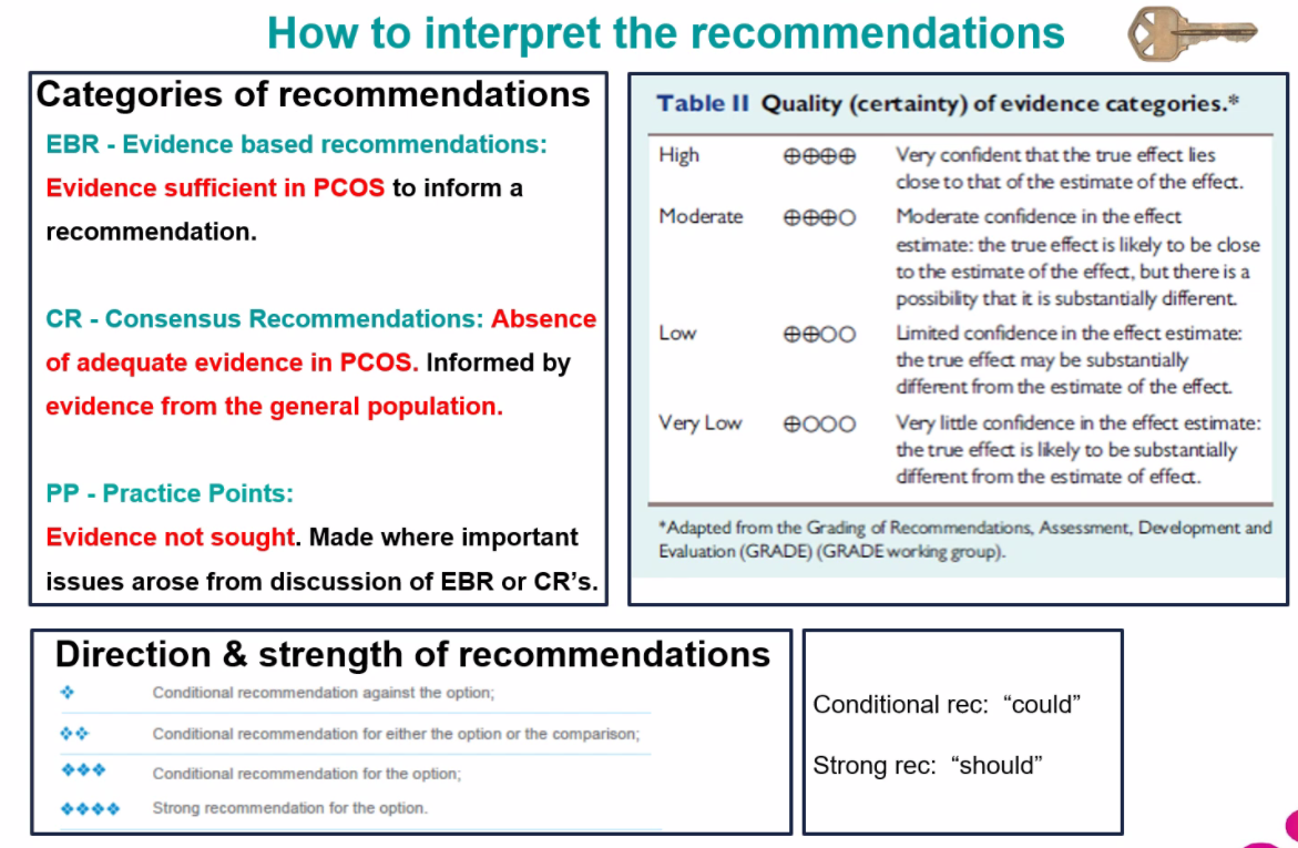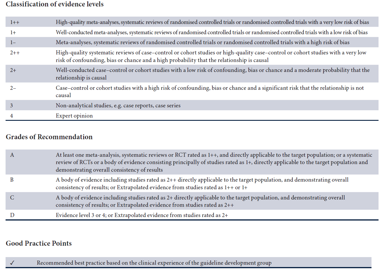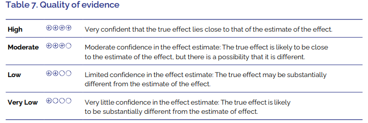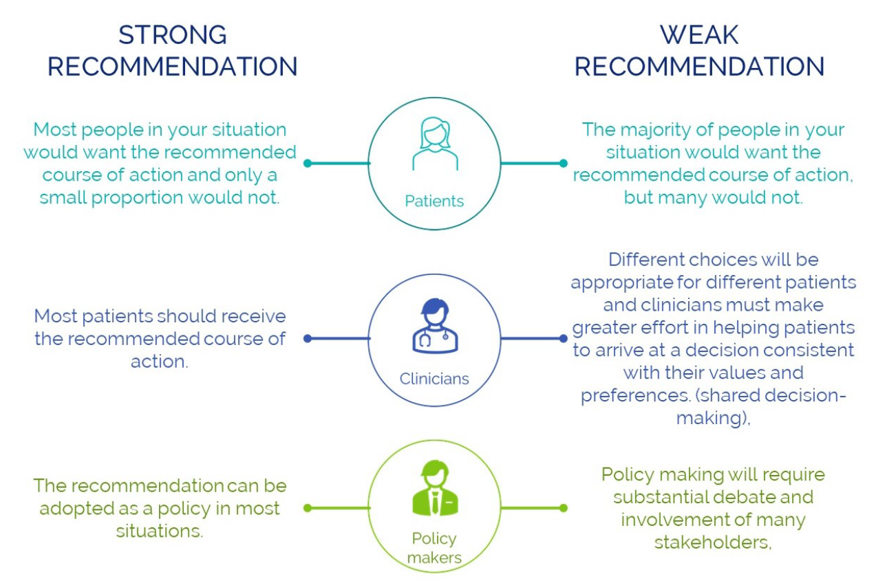 Once quality of evidence grade is determined then assess for the strength of the recommendations (done variably across different guidelines as below)