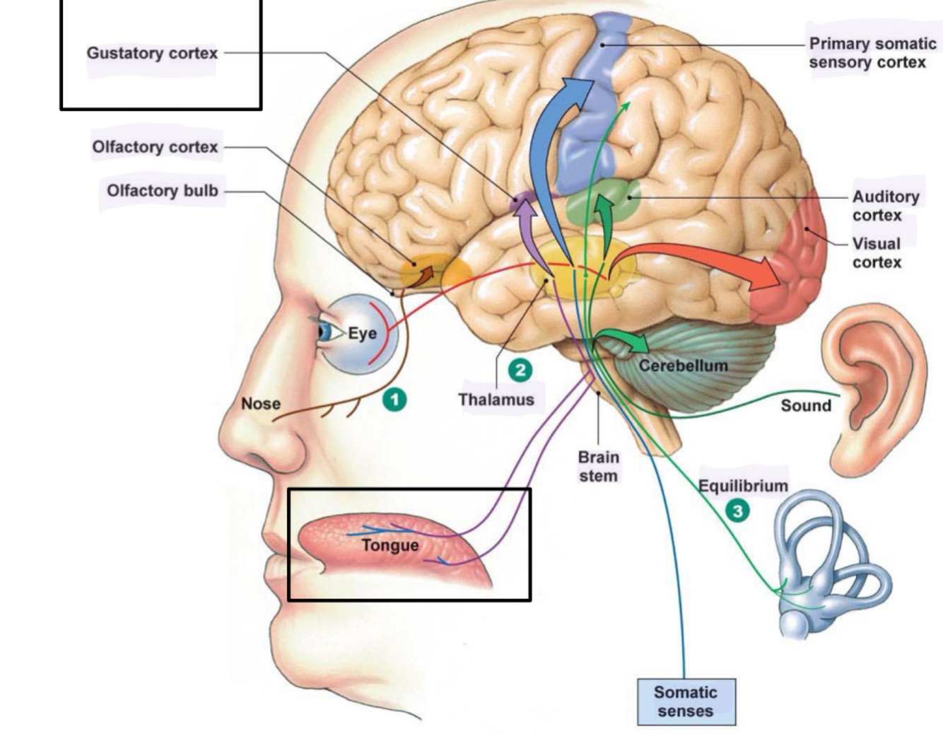 What senses are apart of Gustation?