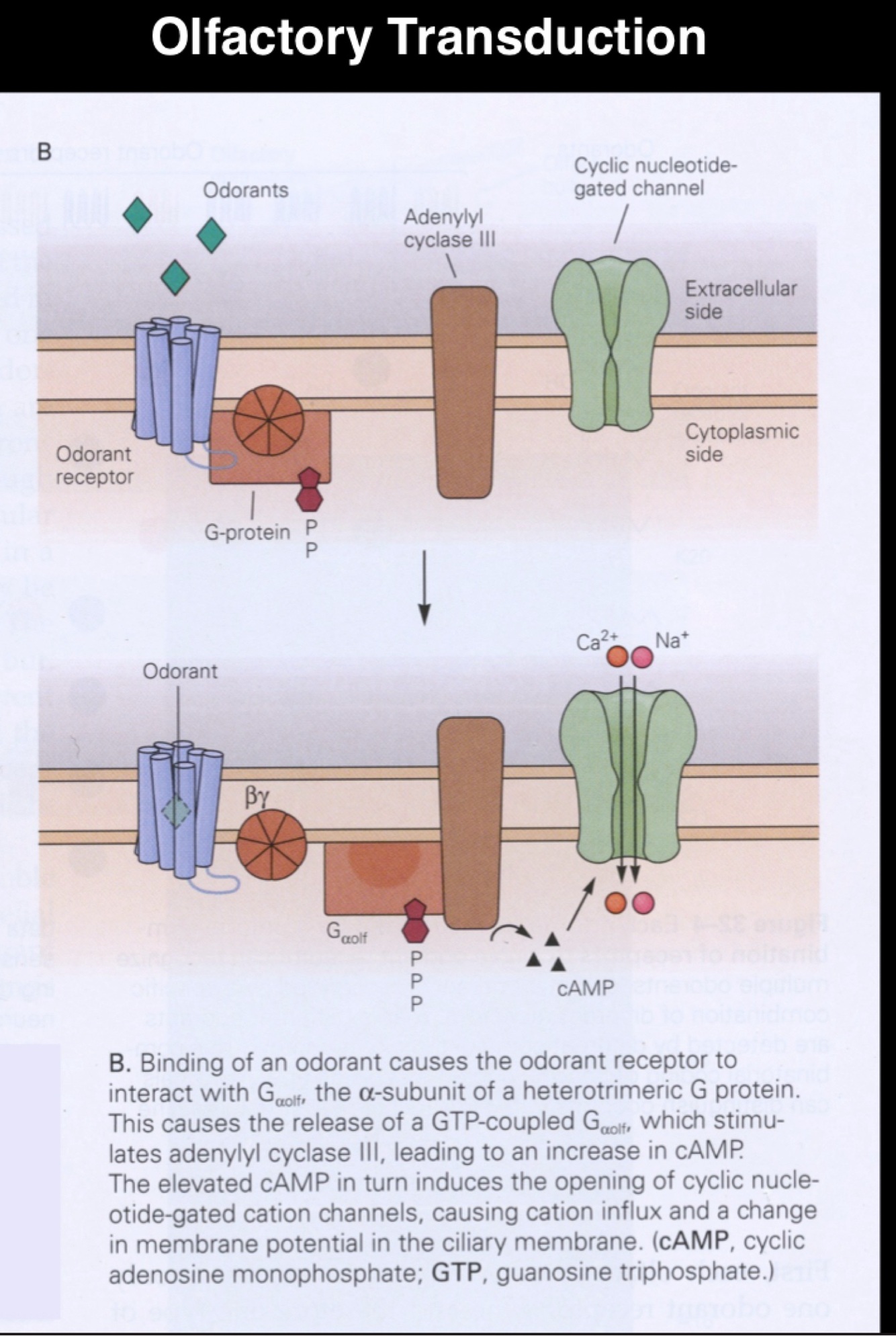 Describe how olfactory transduction takes place: