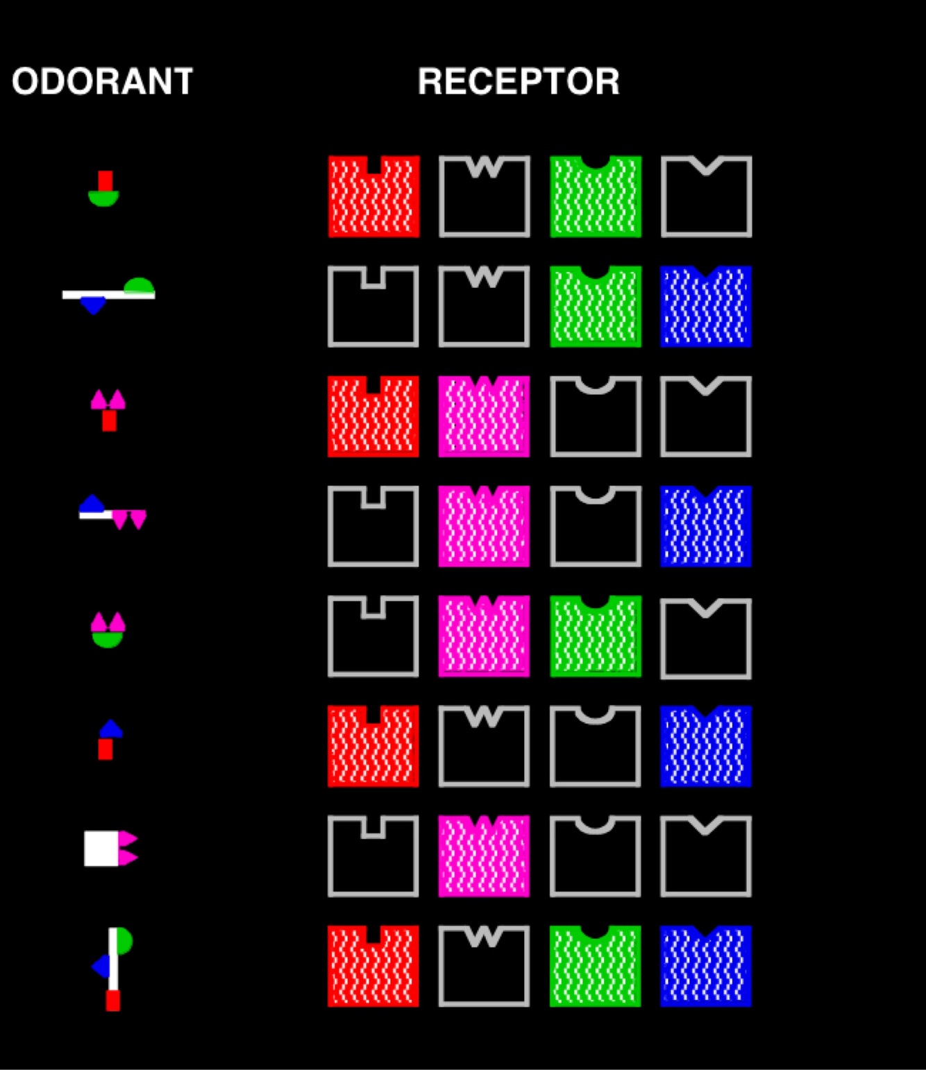 Combinational receptor codes make up odors.