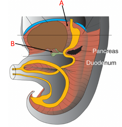 Around the 10th week, the midgut recedes back into the abdominal cavity