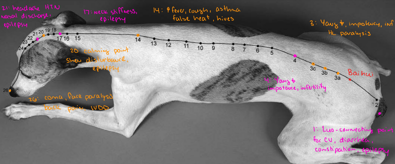 GV: 1-28. anus along back midline to nose: governs all yang channels