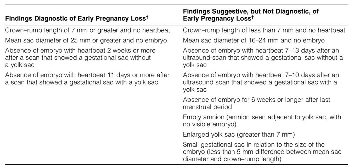 Diagnosis of early fetal loss