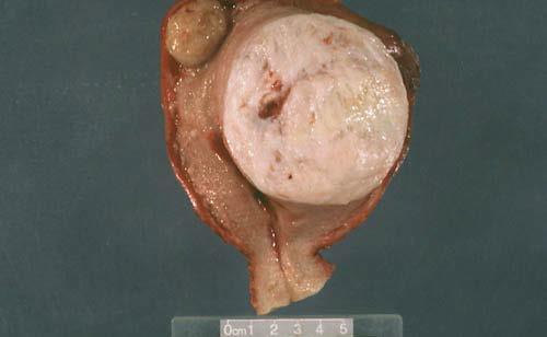 Typical gross appearance: well circumscribed, bulging, whitish, trabeculated and whorled