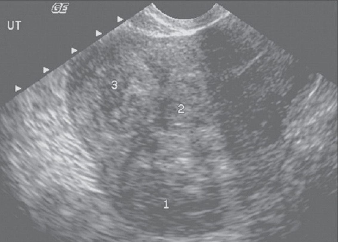 assess thickness and echogenicity pattern