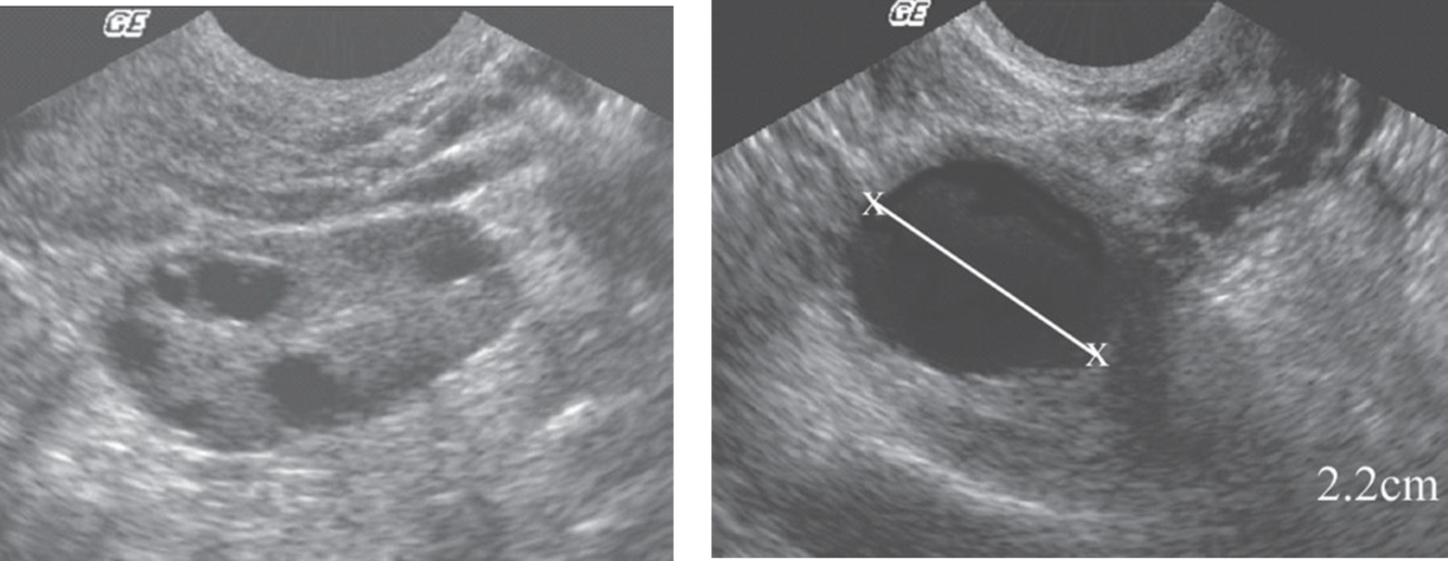 ovarian volume > 10 cm3