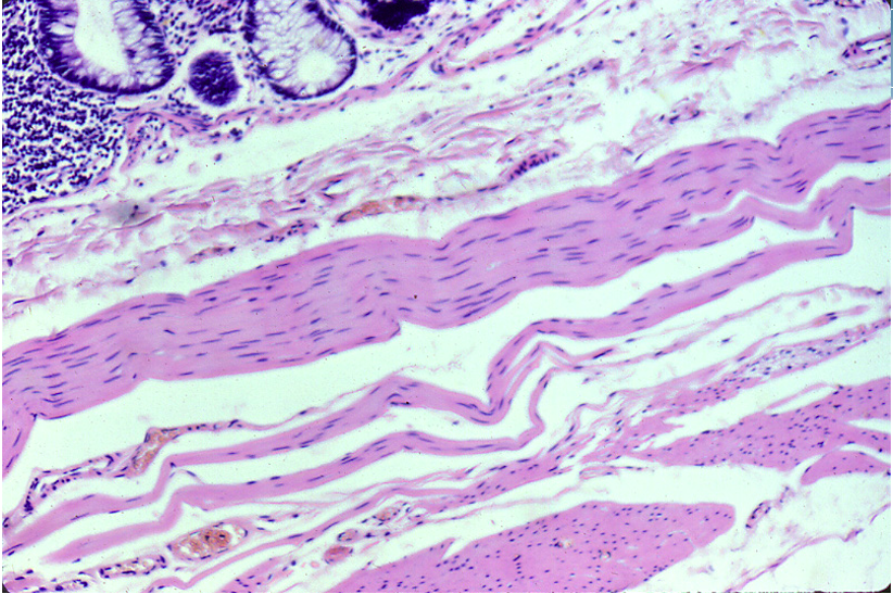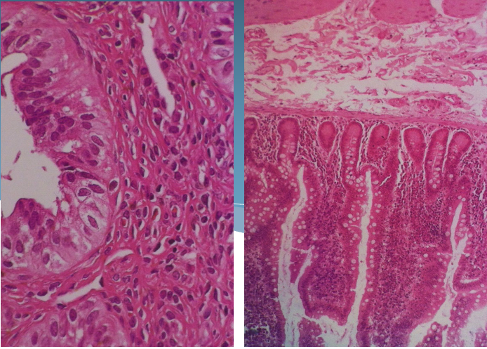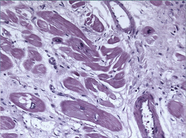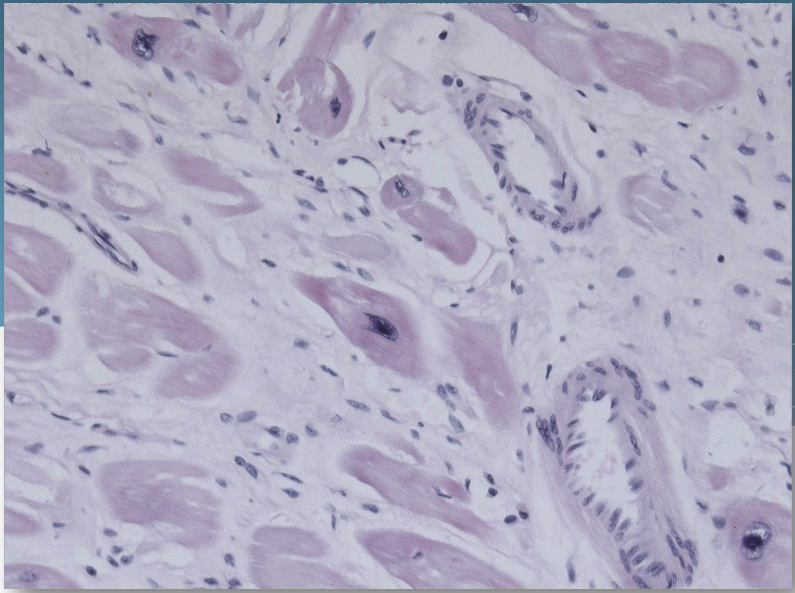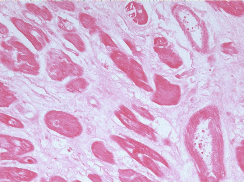 Very pale cytoplasmic staining – too short in eosin