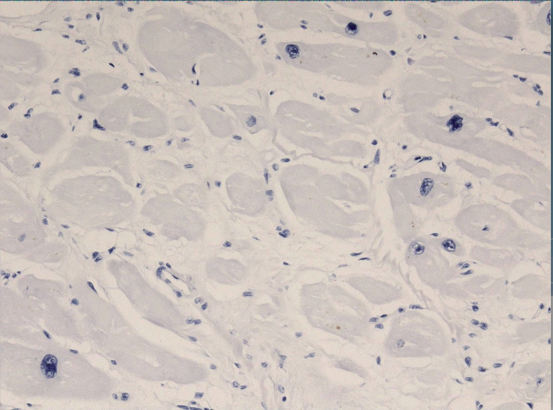No nuclear staining – Hematoxylin was omitted