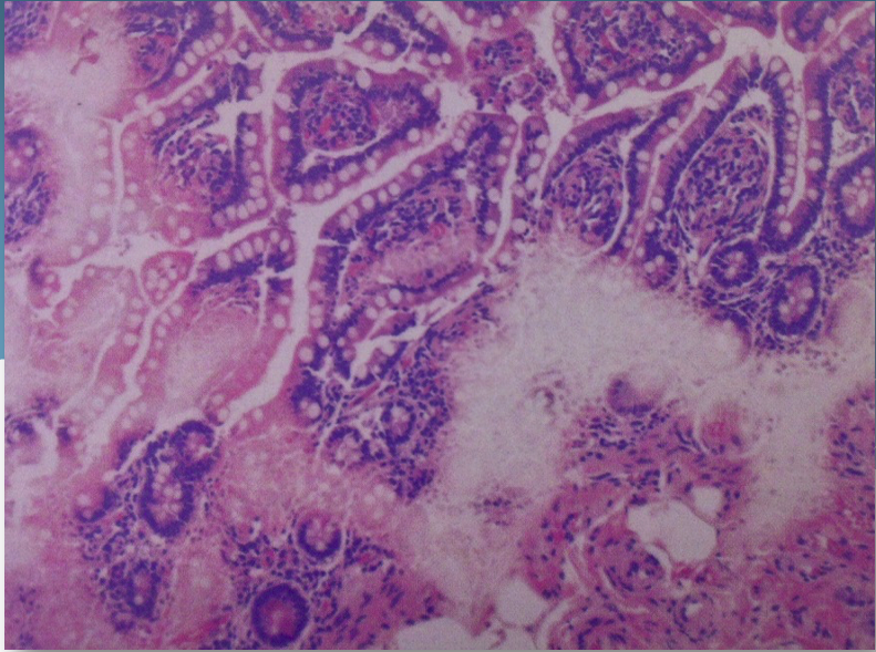 White spots seen in the tissue section. Spotty or irregular staining