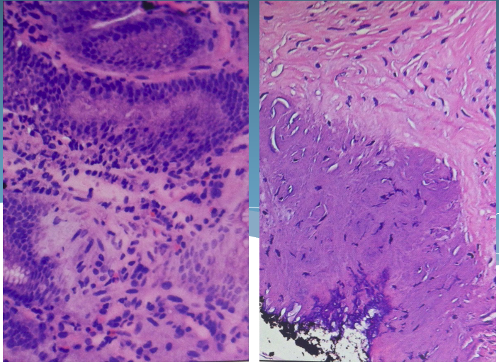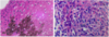 Blue-black precipitation on top of the tissue is due to stain precipitation.