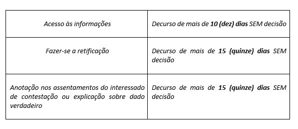 O requerimento será apresentado ao órgão ou entidade depositária do registro ou banco de dados e será deferido ou indeferido no prazo de 48 (quarenta e oito) horas.