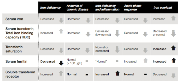 Anemia of chronic disease has an abnormality in the mobilization of iron from reticuloendothelial cells. This anemia can be differentiated from iron deficiency by total iron-binding capacity, serum ferritin level, bone marrow examination, and non responsiveness to a trial of iron therapy.
