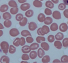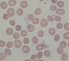 Hypochromic, microcytic red cells