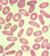 Abnormally large and oval-shaped RBCs