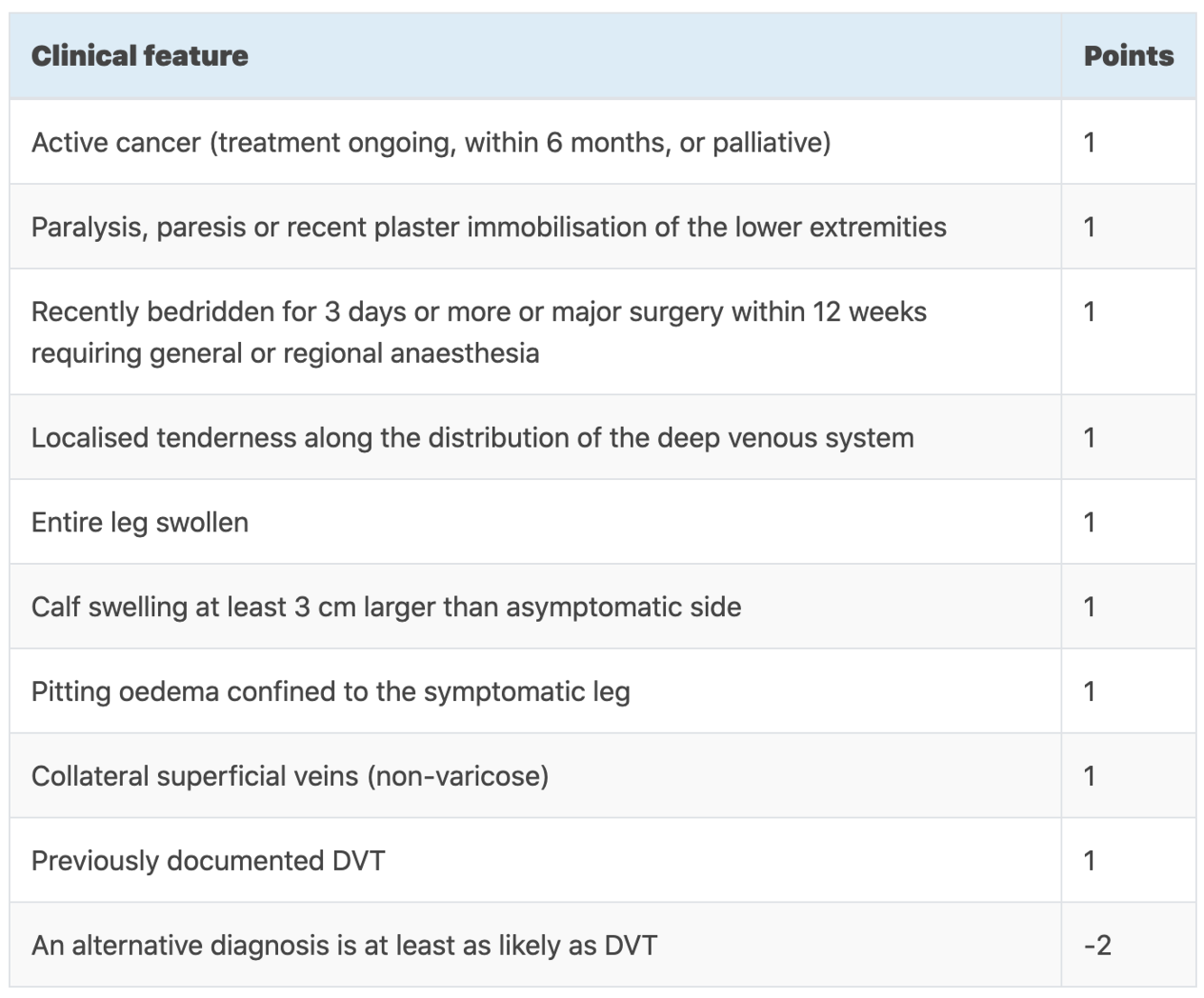 what does the well’s score for DVT mean