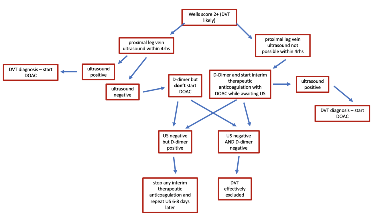 how do you manage a patient with a DVT well’s score of 1 or below
