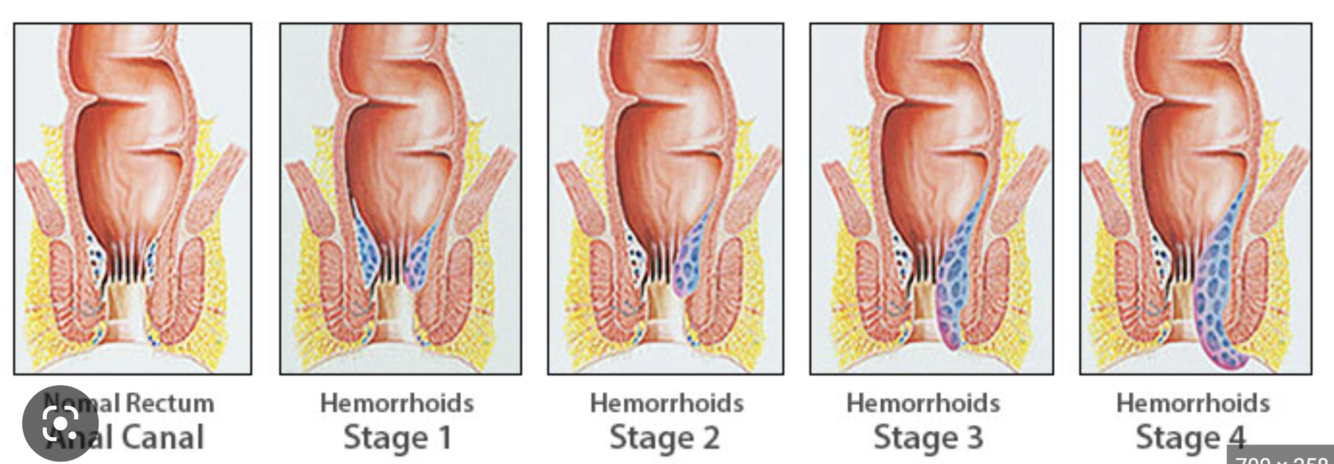 Organise the following into the correct order for the pathogenesis of haemmorrhoids?