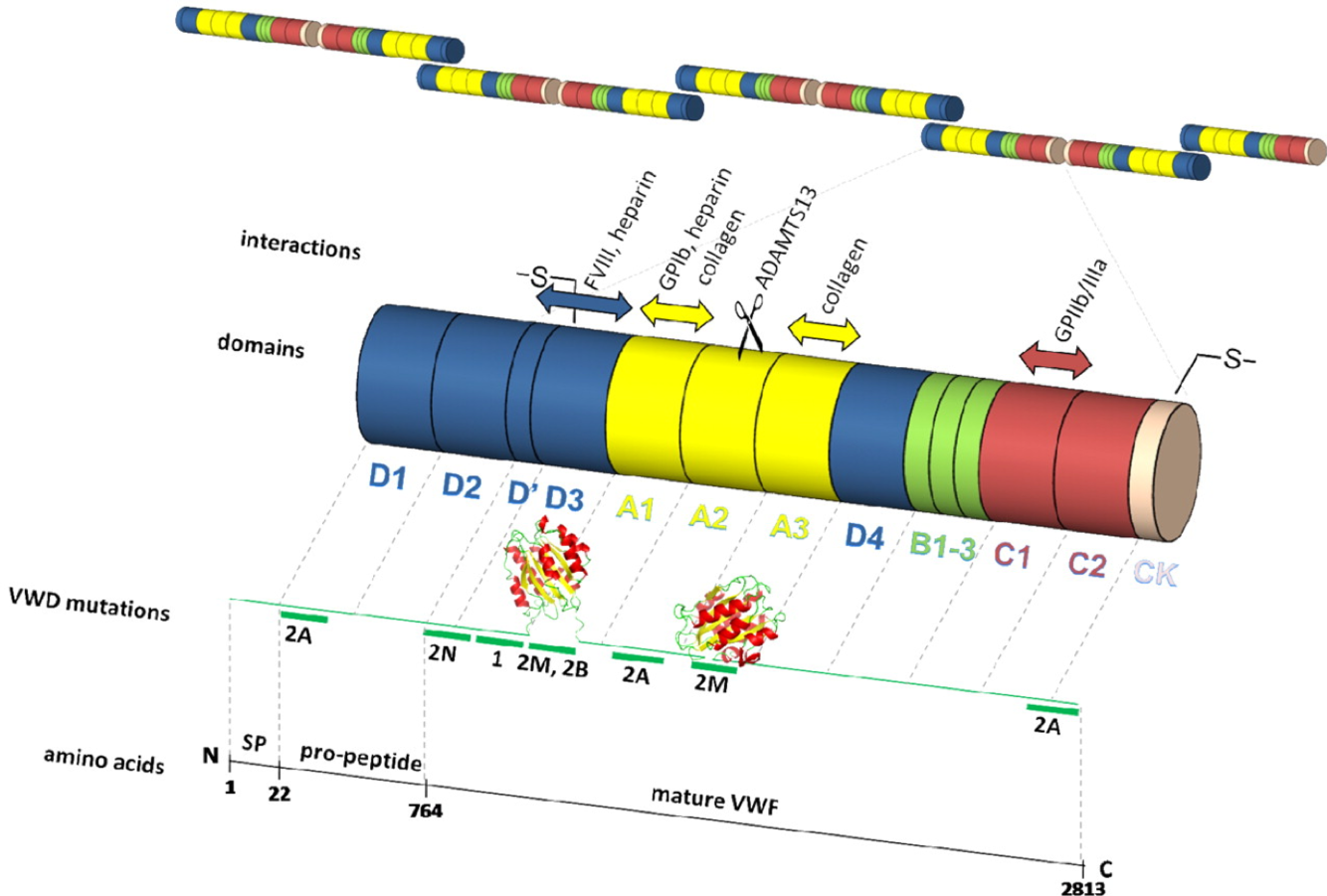 VWF is an adhesive plasma glycoprotein which performs its haemostatic functions through binding to FVIII, to platelets surface glycoproteins, and to constituents of connective tissue. VWF acts as a stabilizer of FVIII in the circulation.