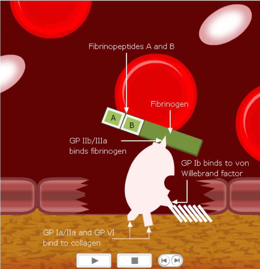 Platelets become activated, stuck to collagen, stuck to vWF, changed conformation and now bound fibrinogen