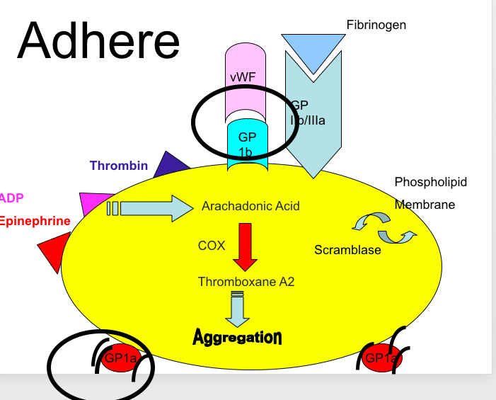 Binds to collagen, bind to vWF, platelets bind to each other - forms primary clot