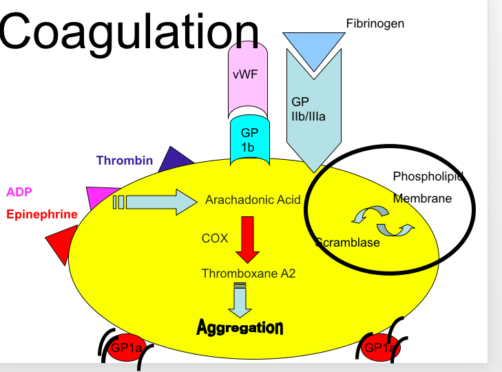 Scramlase allows phospholipid to be expressed on the outside surface of the platelet