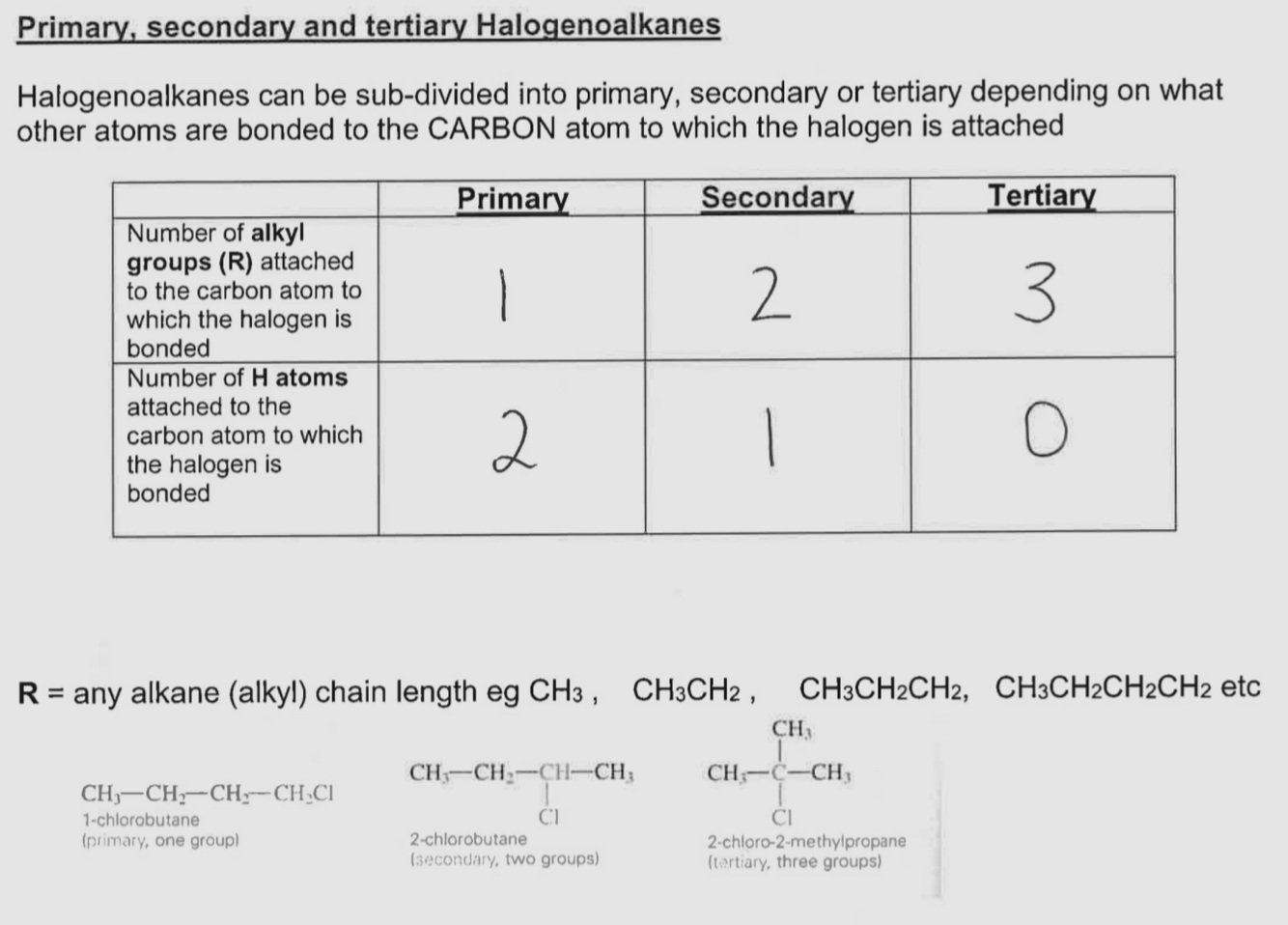 Primary Secondary and tertiary Halogenoalkanes