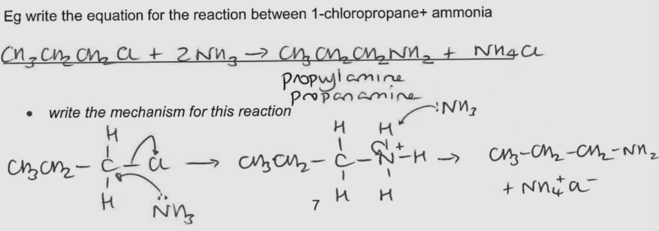 Nucleophilic substitution - reaction with excess ammonia - mechanism & equation & condition