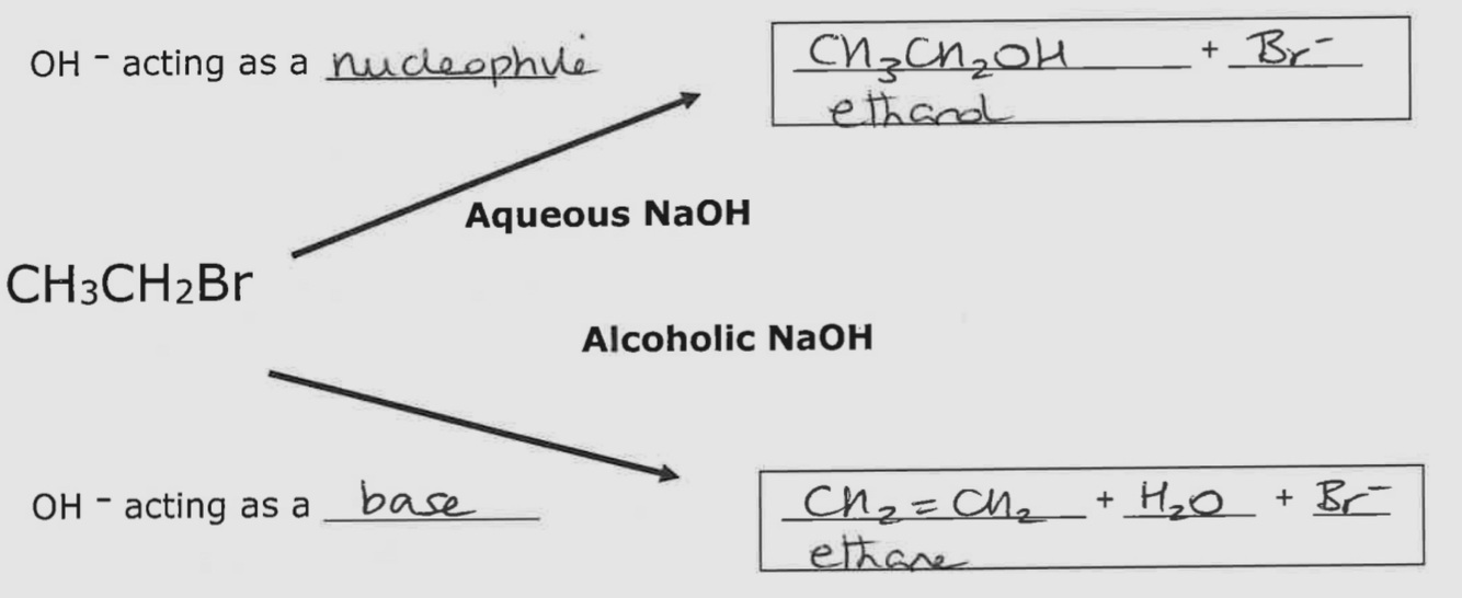Ways Halogenoalkanes can react with NaOH / KOH
