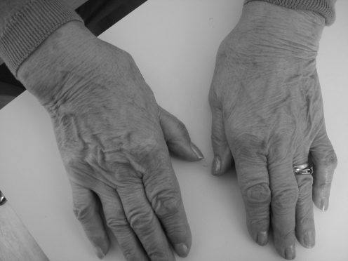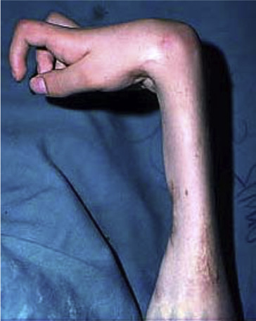 25 year old female presenting with proggressive inability to extend her fingers as represented in the image.