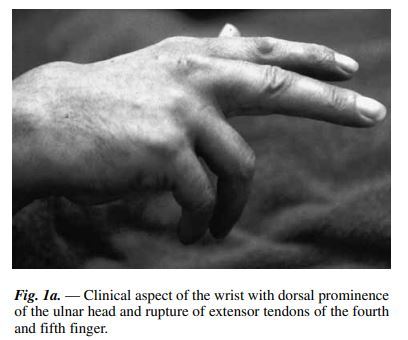 Rupture of the extensor tendons of RF and LF secondary to caput ulna.