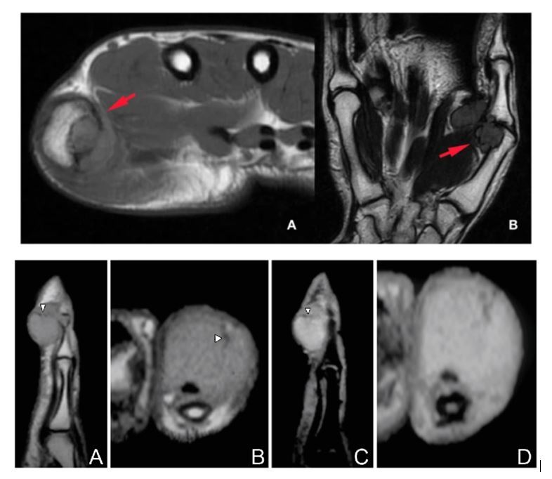 MRI - soft tissue nature for malignancy, proximity to neurovascular bundle, involvement of other vital structures - joint stability in coronal and sagittal plane, FDP involvement.