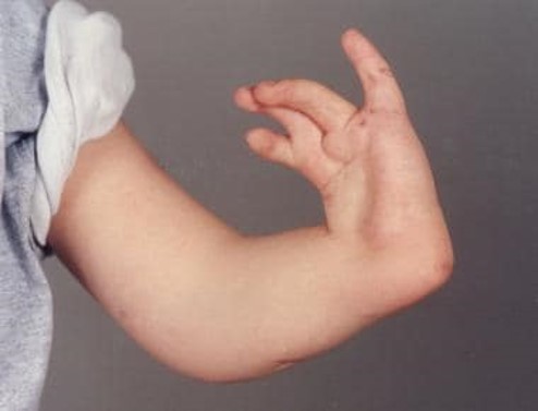 7-month-old boy has this upper limb deformity. The initial work-up is negative for any cardiac, hematopoetic or renal abnormalities. He has good active elbow flexion and no other deformities.