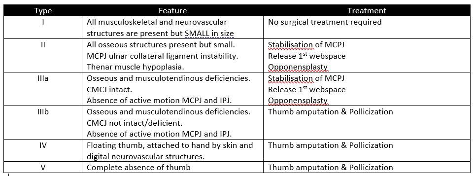 Type IIIb, IV, V - pollicization