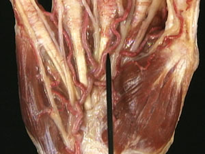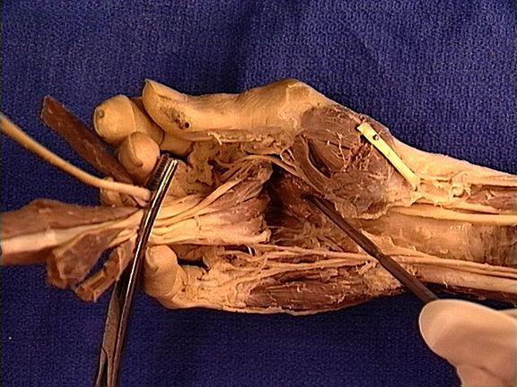 than those to the thenar muscles, protecting the lumbrical motor fibers from compression.