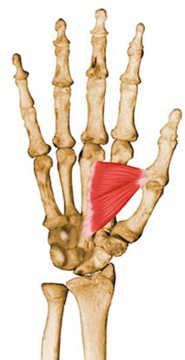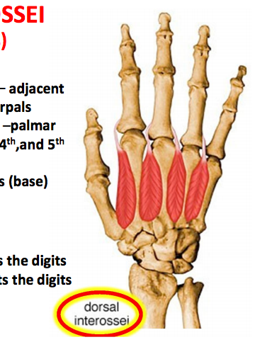 metacarpals TOWARDS the middle finger. think PT (since I need PT since my back hurts right now)